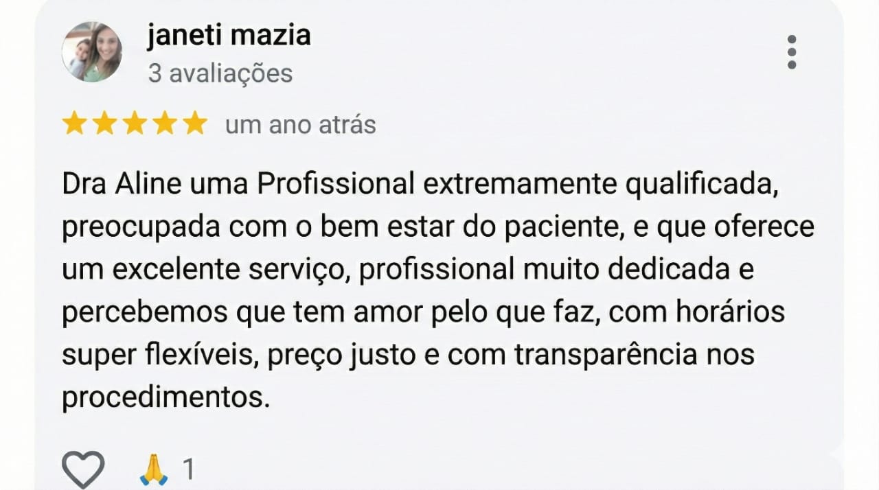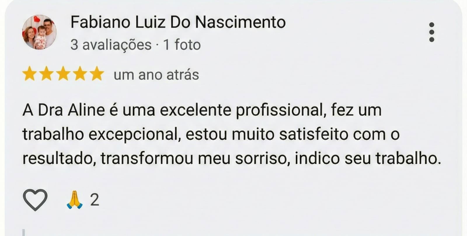 Cada caso é avaliado individualmente e, quando faceta não é a melhor opção, a Dra. Aline orienta alternativas. A prioridade é sempre a sua saúde, e não simplesmente “fazer procedimento”.