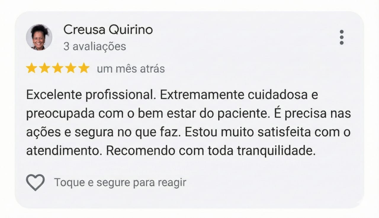 Quando necessário, é utilizada anestesia local, e a Dra. Aline explica cada etapa com calma. A ideia é que você se sinta tranquilo(a) e amparado(a) durante todo o processo.